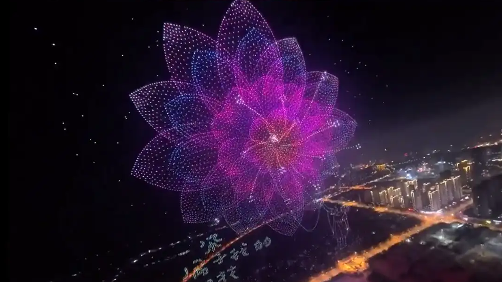سماء مدينة شينغداو الصينية تحولت إلى لوحة فنية عملاقة عندما حلّقت 11,000 طائرة درون لتشكّل مشهدًا ضوئيًا مبهرًا دخل رسميًا موسوعة غينيس للأرقام القياسية كأكبر صورة تُرسم في السماء بواسطة الطائرات بدون طيار.