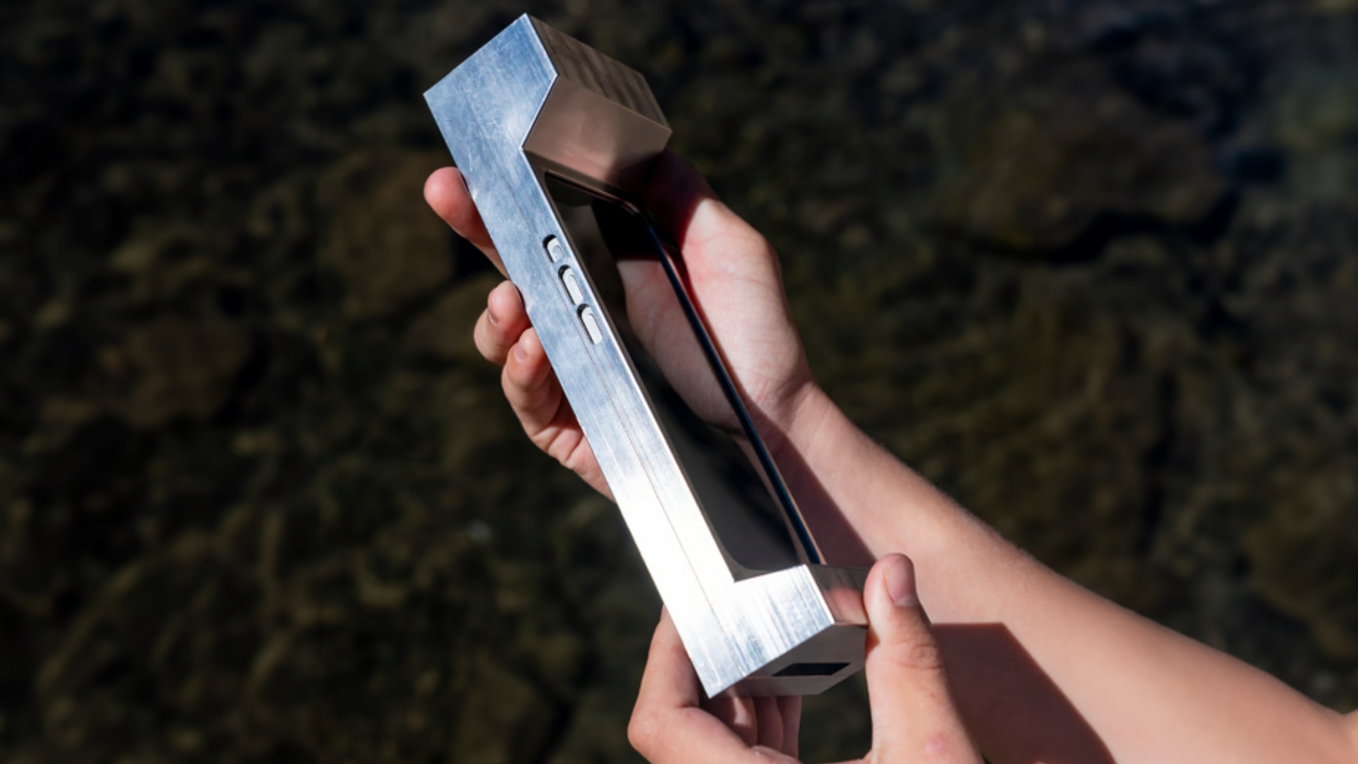 الغطاء مصنوع من معدن مصبوب بوزن يقارب 6 أرطال (حوالي 3 كغم)، ويُثبت على الهاتف بشكل فعلي. الهدف ليس جعله غير عملي، بل جعله صعب الاستخدام لفترات طويلة.