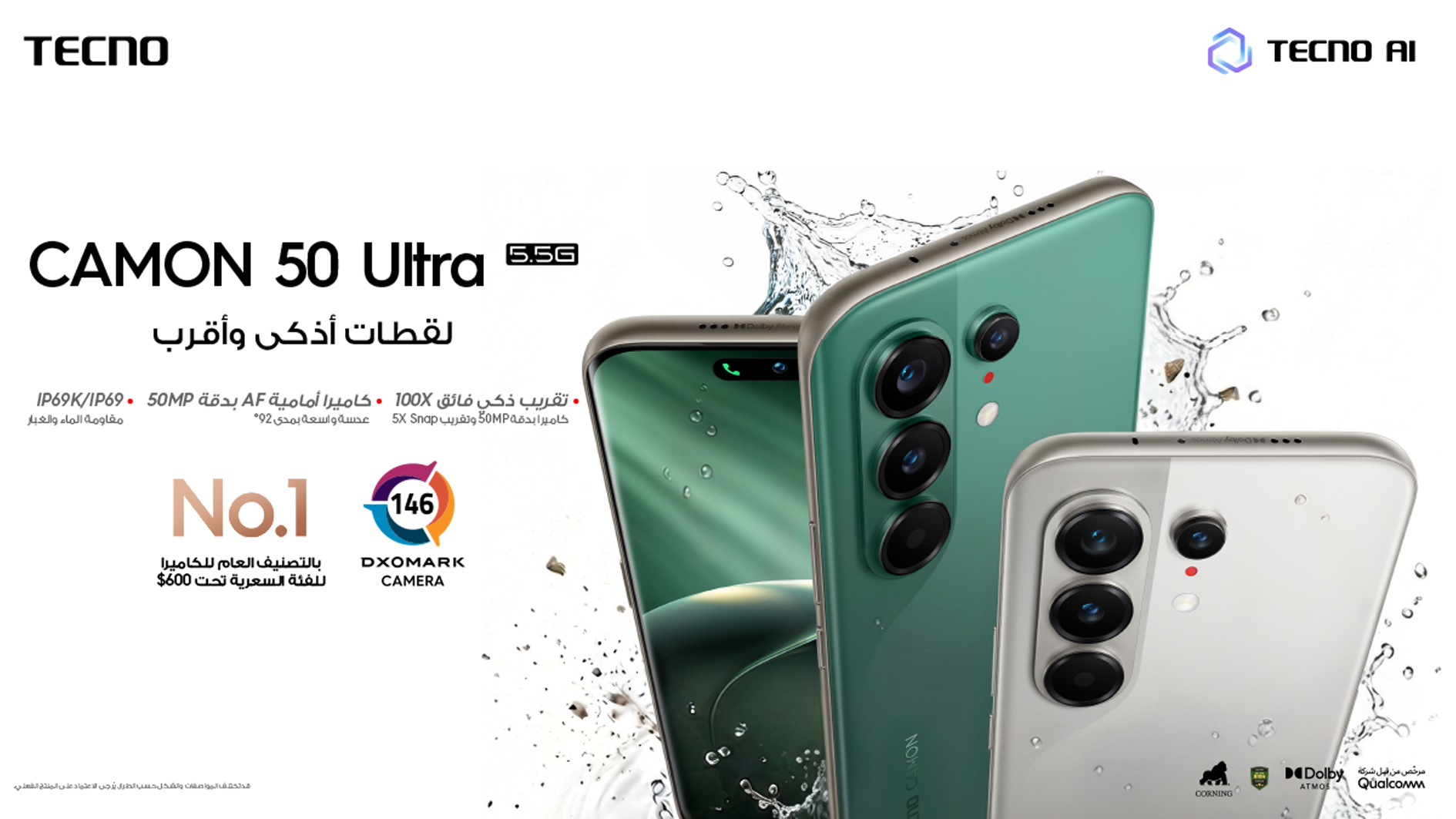 الرياض، 23 أبريل 2026: أطلقت TECNO رسمياً هاتفها الجديد CAMON 50 Ultra 5.5G في السوق السعودي، ليعيد تعريف تجربة التصوير الاحترافي والأداء اليومي الموثوق. يبرز الهاتف كأداة إبداعية متكاملة، حيث يضع الكاميرا في صدارة أولوياته مع تعزيزها بتقنيات الذكاء الاصطناعي ومعايير متانة فائقة، مقدماً بذلك مزيجاً مثالياً بين الجودة الاستثنائية والقيمة التنافسية التي تلبي تطلعات المستخدمين في المملكة.